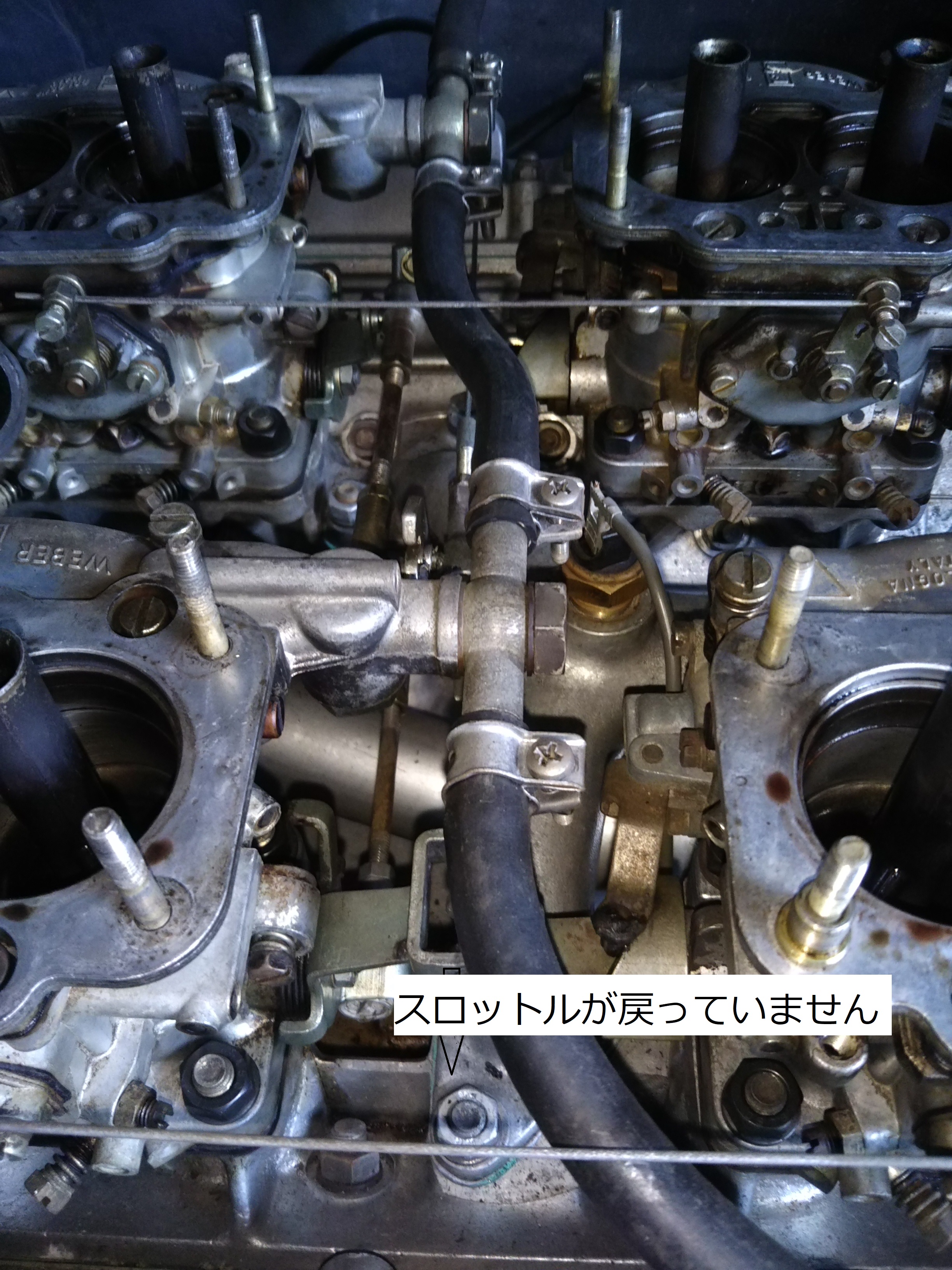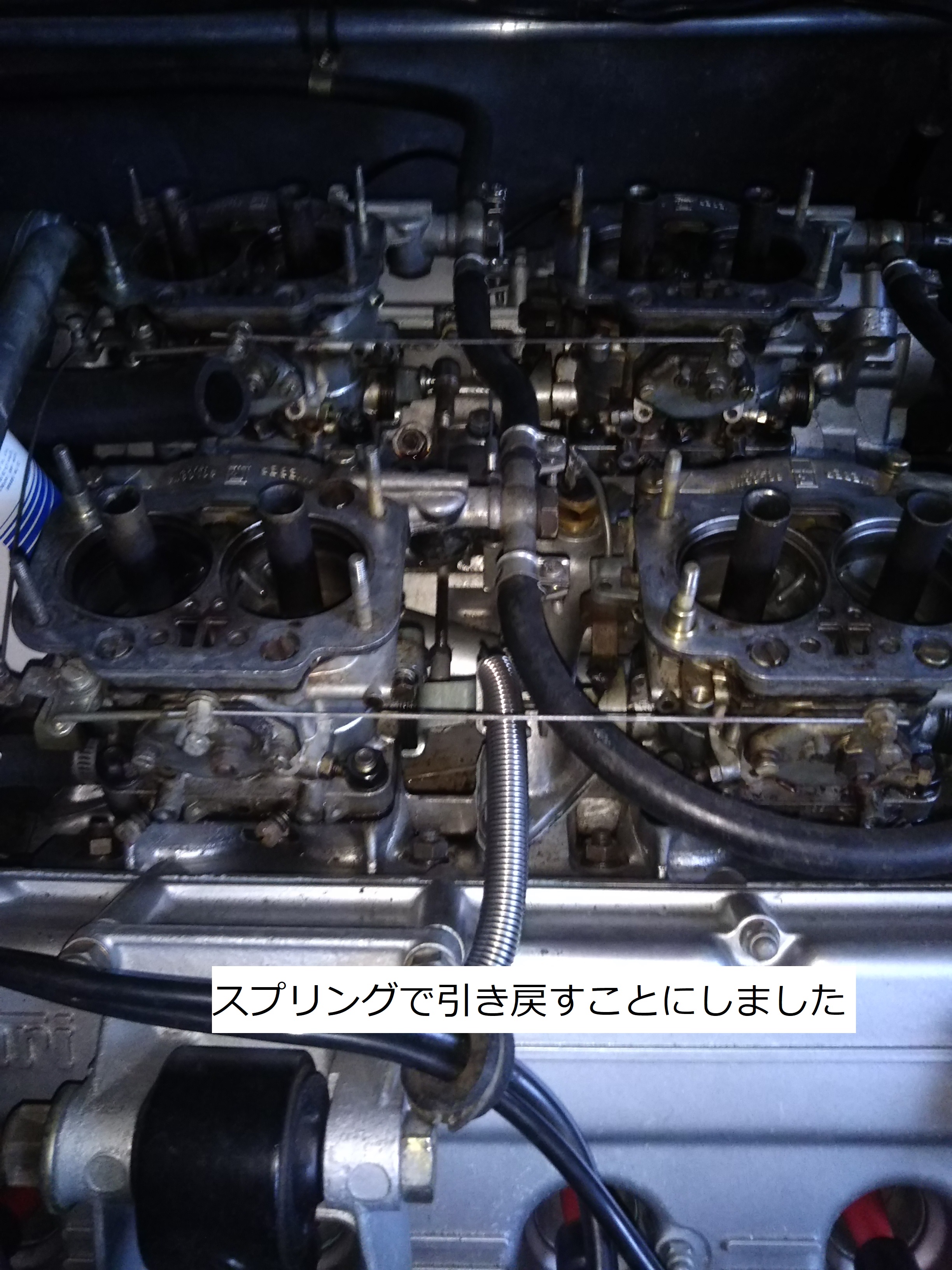 ウェーバーを取り外して、清掃して注油して…とやってあげたかったのですが、とりあえず、この日は、なんとかしてスロットルが戻るようにしてみることにしようと思い、潤滑剤を塗布して翌日まで放置しておきました。