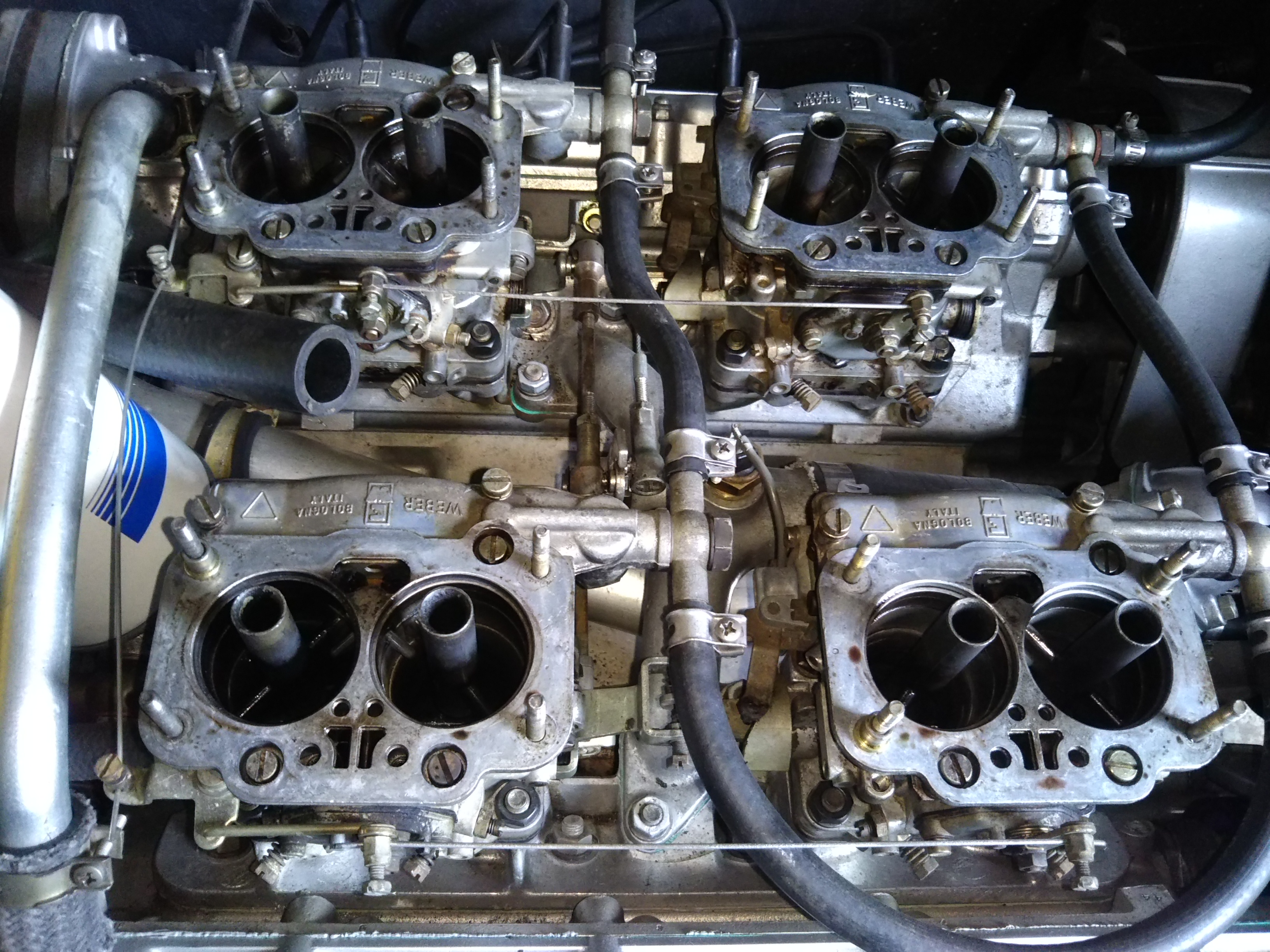 申し遅れましたが、このフェラーリディノ308GT4は1976年モデルのアメリカ並行と思われる車両で、ウェーバーキャブレターのダウンドラフト4連装というお年寄りです。